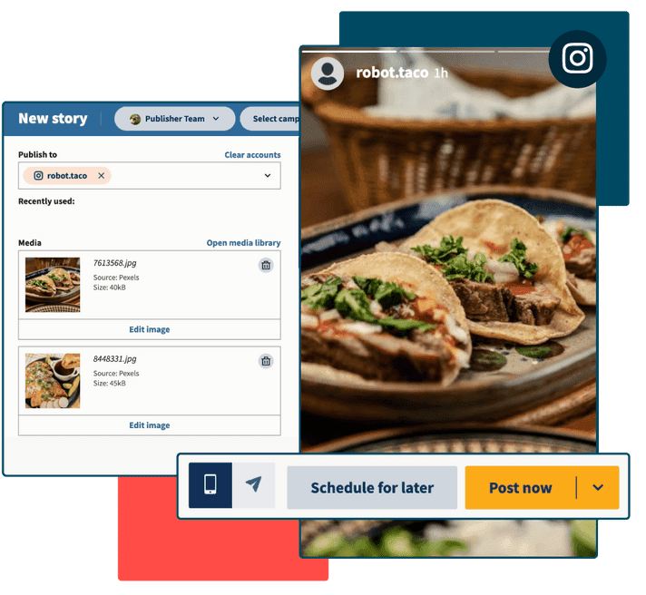 デスクトップ又はスマートフォンで写真、動画、ストーリーやカルーセルを簡単にスケジュールして投稿します。