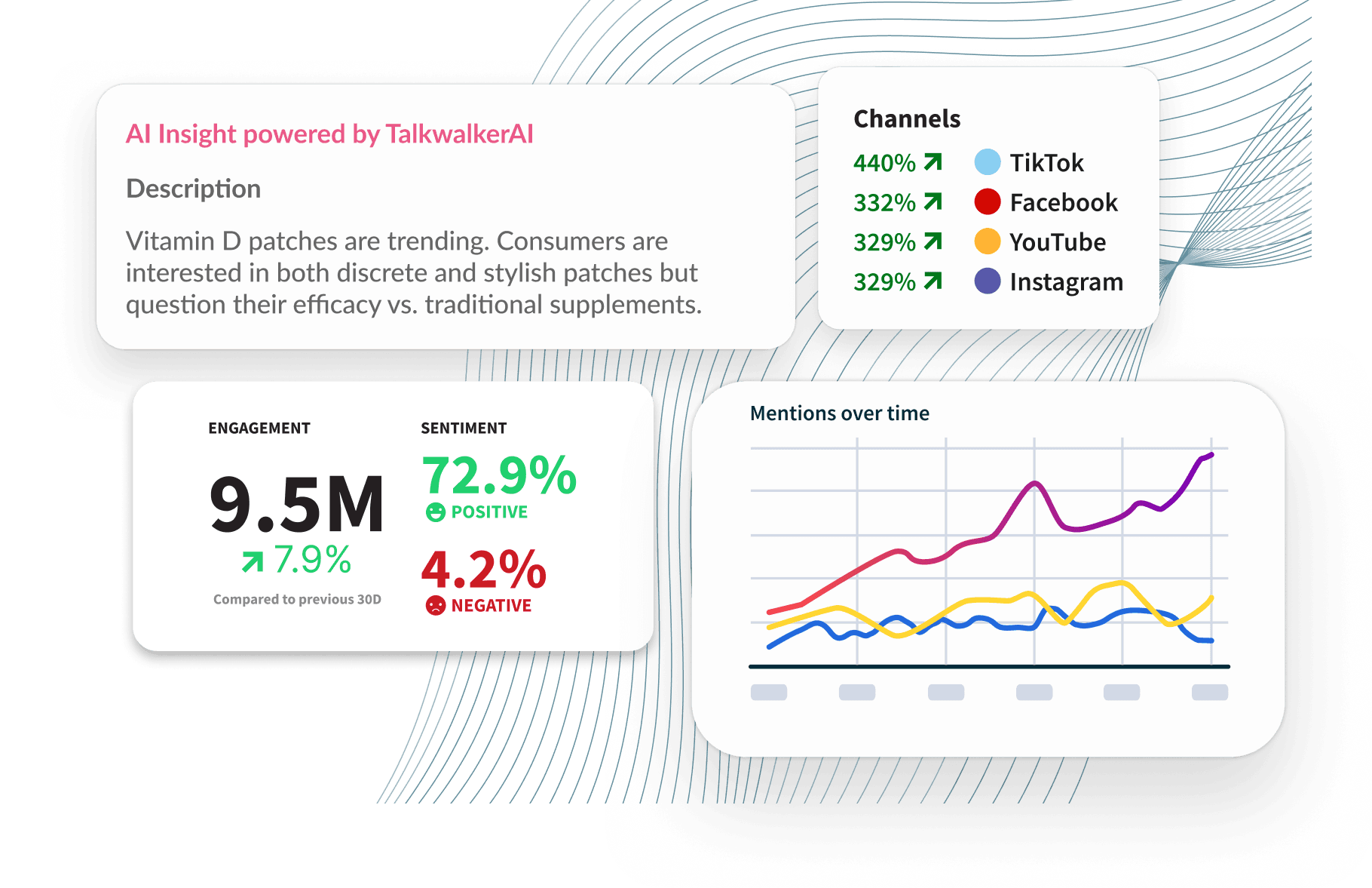 Los datos de Talkwalker, líderes en el sector, garantizan que no te pierdas ninguna mención. Monitoriza las redes sociales, las noticias, los foros, la radio, las retransmisiones, los medios impresos y mucho más a nivel global con una precisión y una velocidad inigualables. Además, detecta las menciones de tu marca en vídeos, imágenes, pódcasts y mucho más.