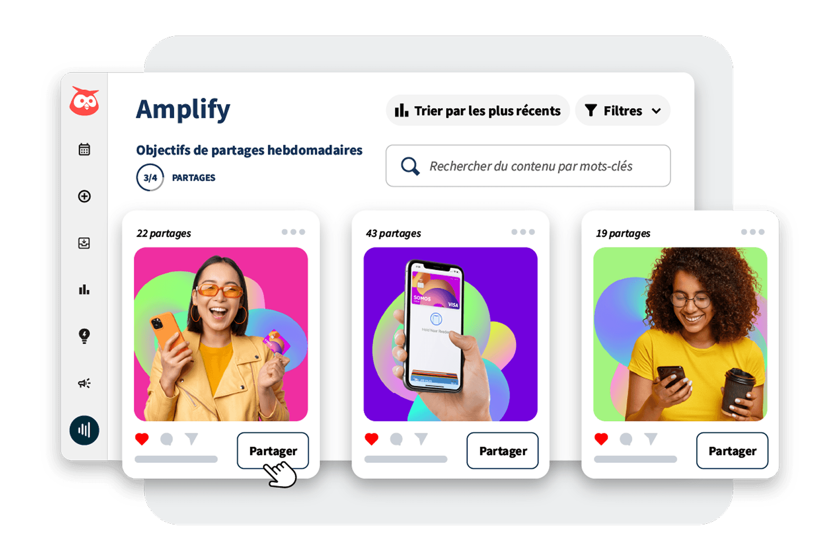 Transformez vos employés en ambassadeurs de marque et multipliez par 8 votre engagement sur les médias sociaux avec Hootsuite Amplify, l'outil de programme d'employés ambassadeurs le mieux noté.