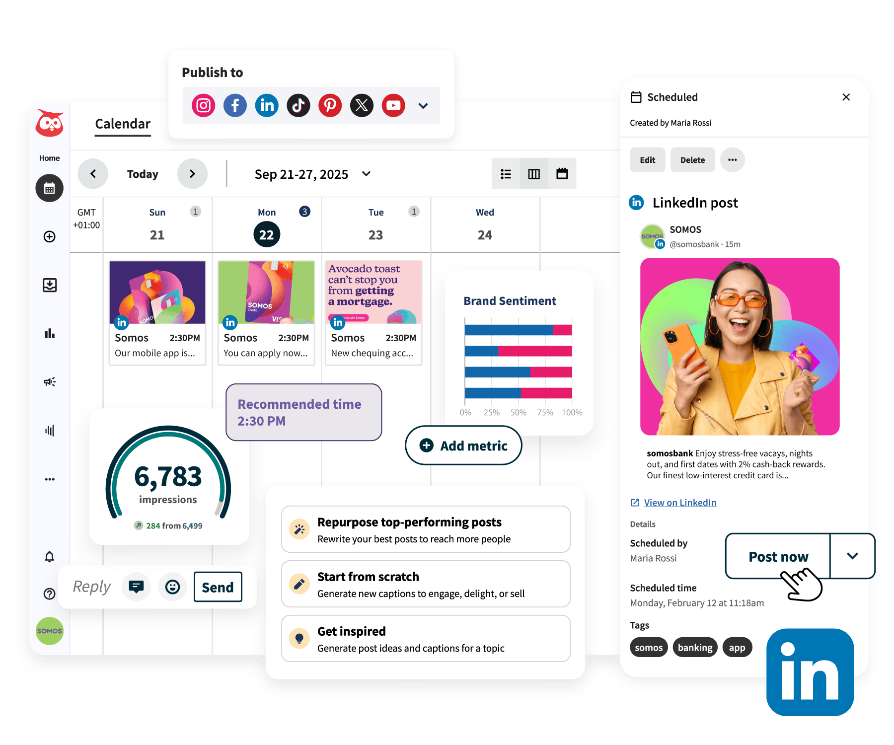 Analisi, programmazione e creazione di post su LinkedIn: tutto in un unico posto