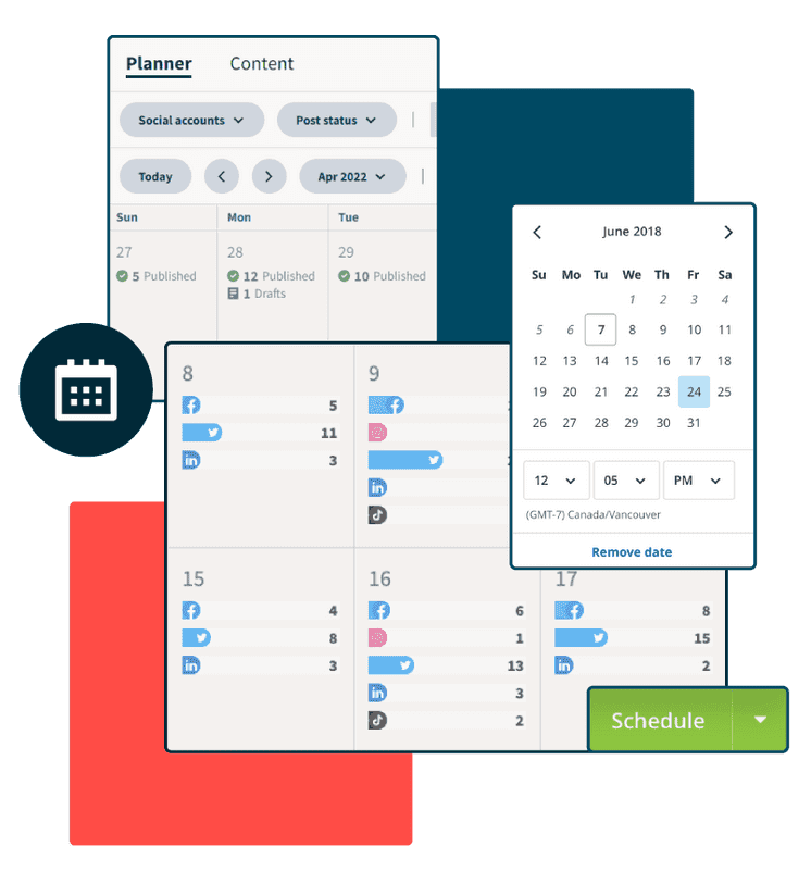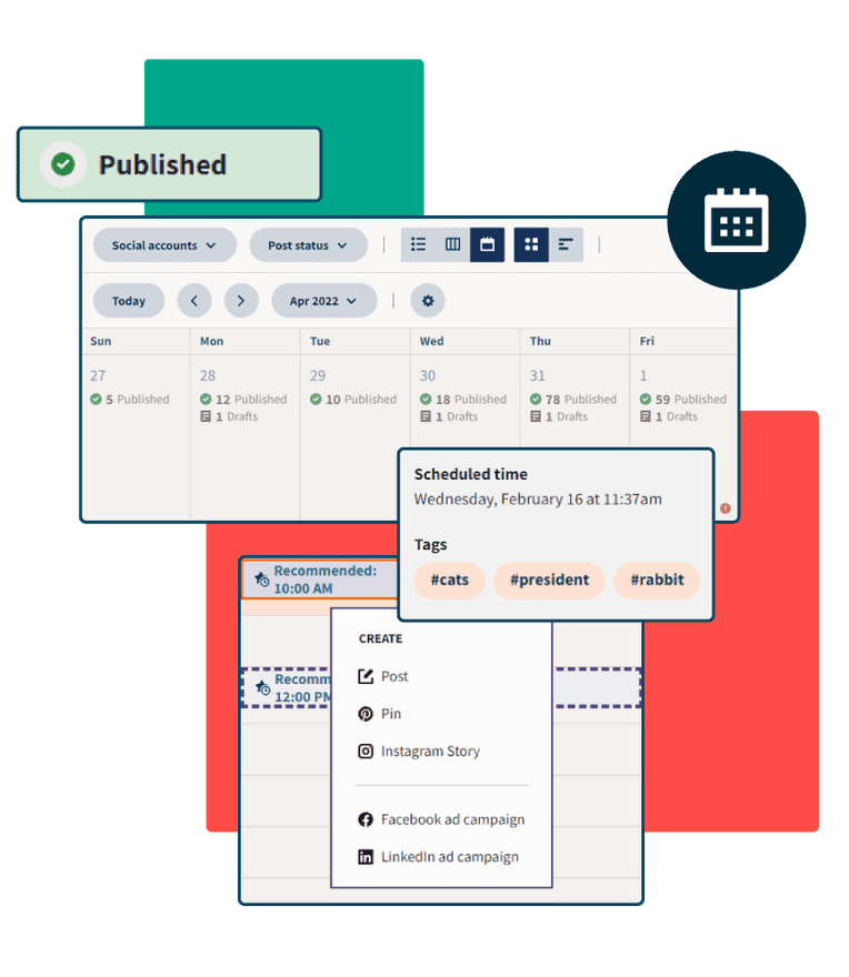 Visualize todos os seus conteúdos de mídias sociais no mesmo calendário. Acompanhe todos os agendamentos e publicações, crie novas postagens e organize as existentes com facilidade.