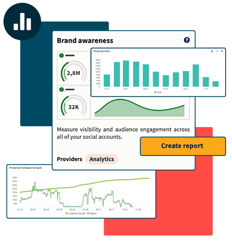 Crie painéis personalizados com resumos compartilháveis do desempenho das postagens nas suas mídias sociais.