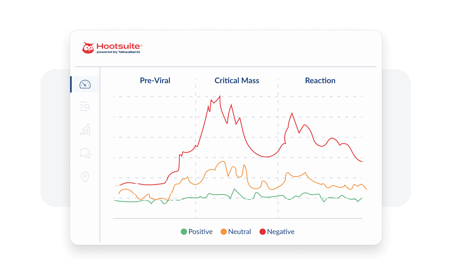 Hootsuite analyzes millions of conversation hubs — social media, news, blogs, forums, video, and even review sites — to provide a holistic view of sentiment at any given moment.