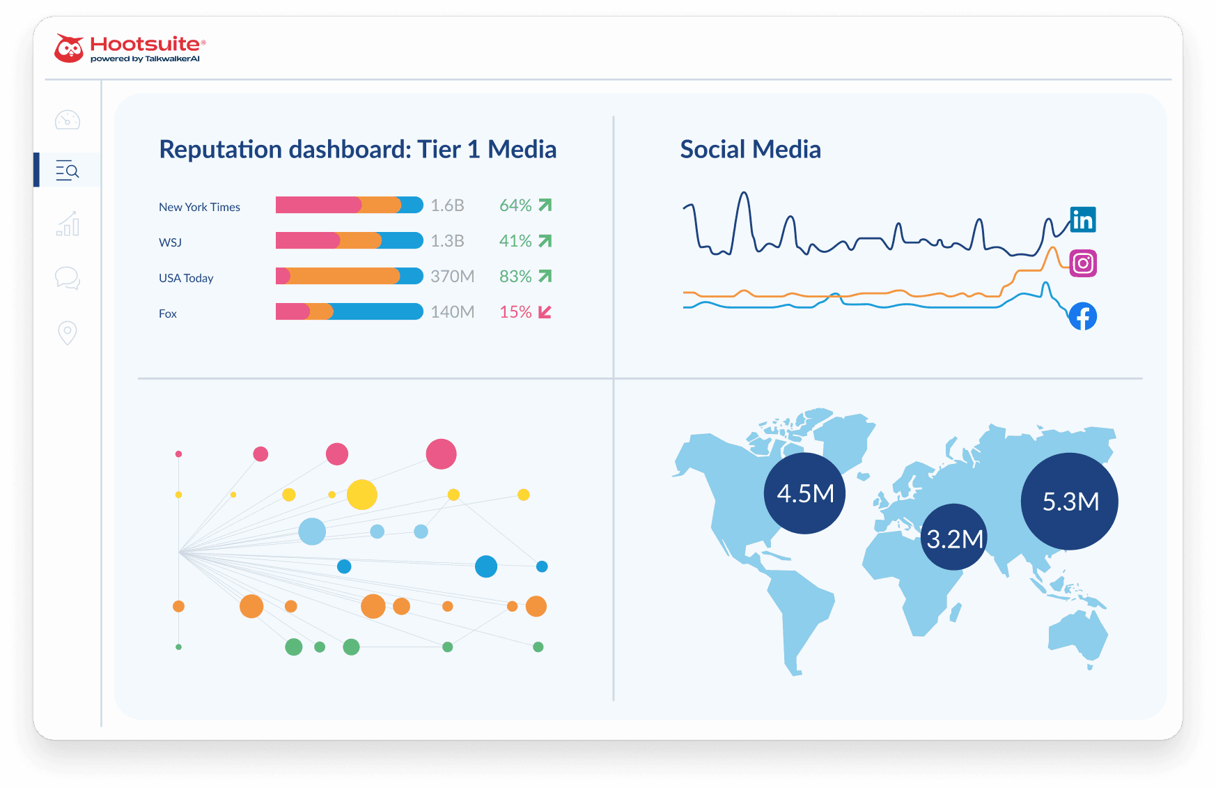 The best reputation management software offers real-time monitoring, accurate sentiment analysis, issue detection, and deep cross-channel insights. Hootsuite powered by Talkwalker AI is considered a leader because it combines enterprise-grade data coverage with powerful AI, enabling brands to detect risks early, benchmark performance, and make informed decisions. With comprehensive media monitoring, competitive analysis, and flexible reporting, Talkwalker gives teams everything they need to protect and strengthen their reputation.