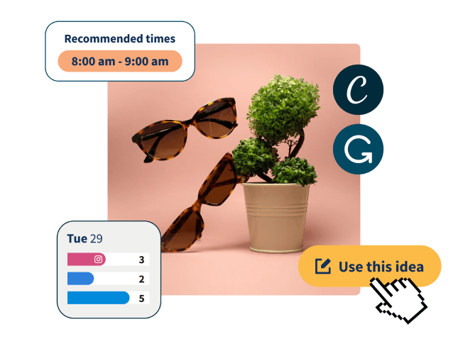 Reduza pela metade sua semana de trabalho com as melhores ferramentas de criação de conteúdo do setor. Faça isso rapidamente com modelos integrados do Canva, um escritor de legendas com IA e colunas para descobrir o melhor conteúdo para compartilhar.