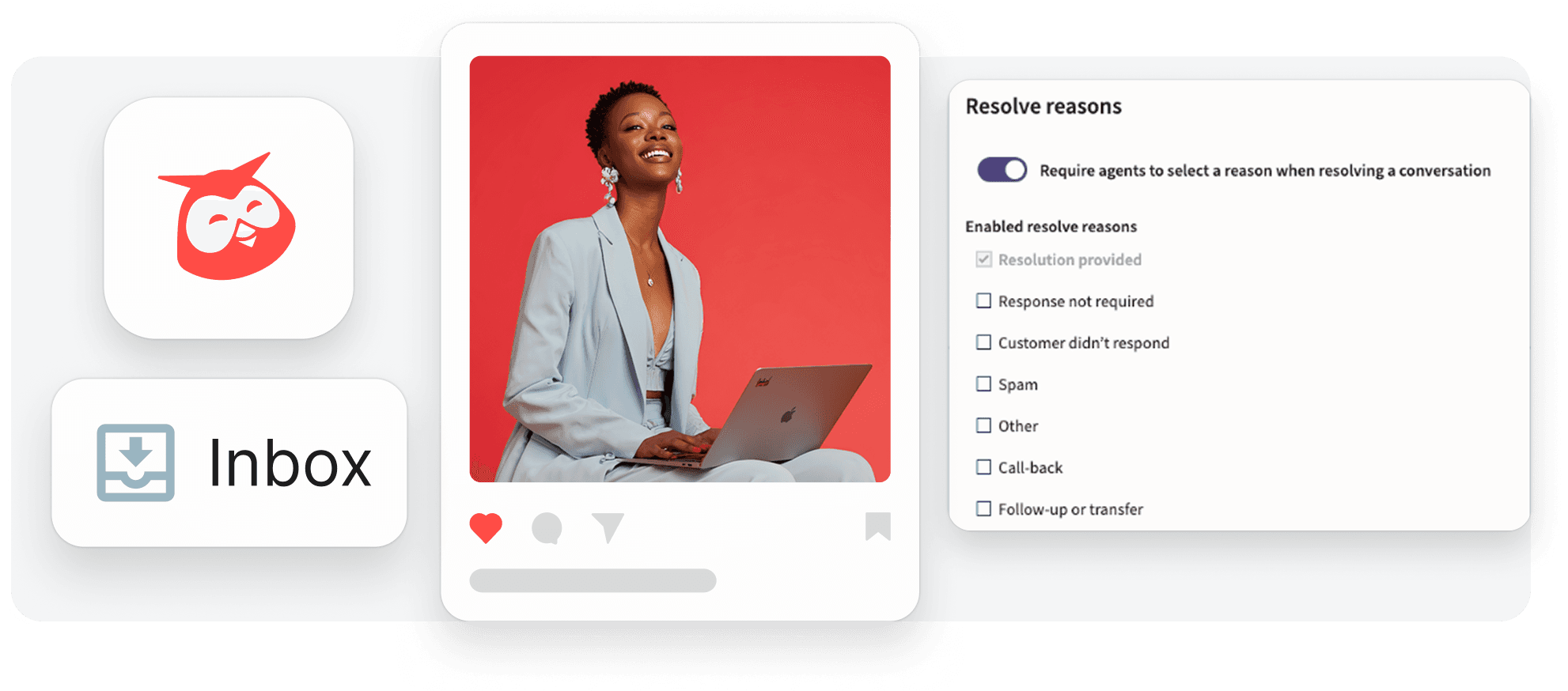 Greater flexibility to customize the Inbox and create numerous custom resolve reasons allows you to align the tool with your specific workflows and gain deeper insights into customer conversations.