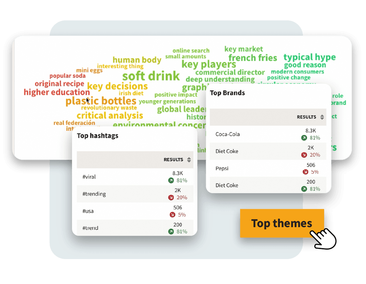 Lleva un seguimiento y prevé tendencias, crea el contenido más atractivo para tu audiencia y obtén una verificación instantánea del ambiente sobre cualquier tema. Después, observa cómo se dispara tu porcentaje de interacción.