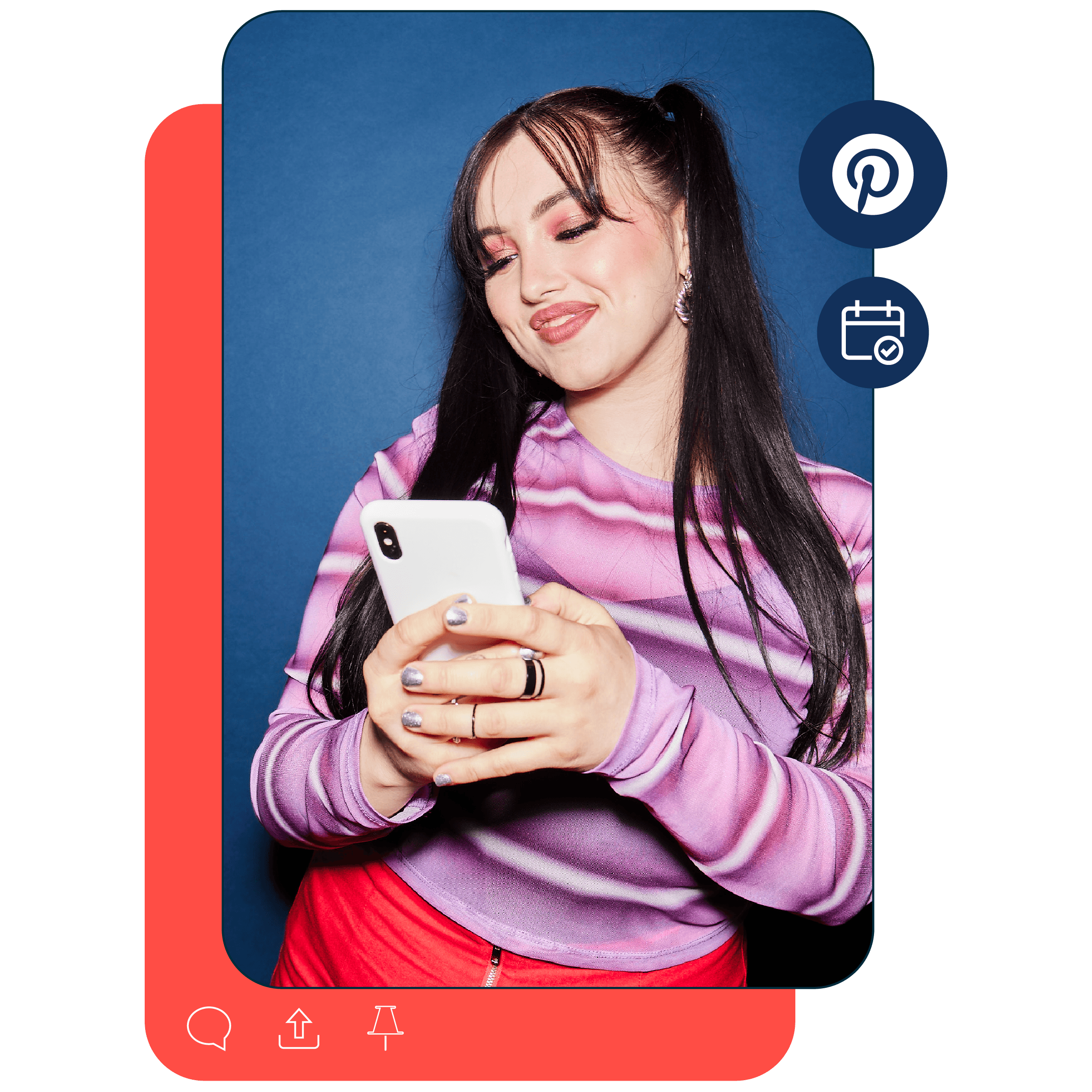 Sube directamente desde tus propios archivos multimedia preaprobados y configura los flujos de trabajo de aprobación para mantener tus pins de acuerdo con los valores de la marca. Además, puedes crear tableros secretos para proteger tu elegante estética de Pinterest.