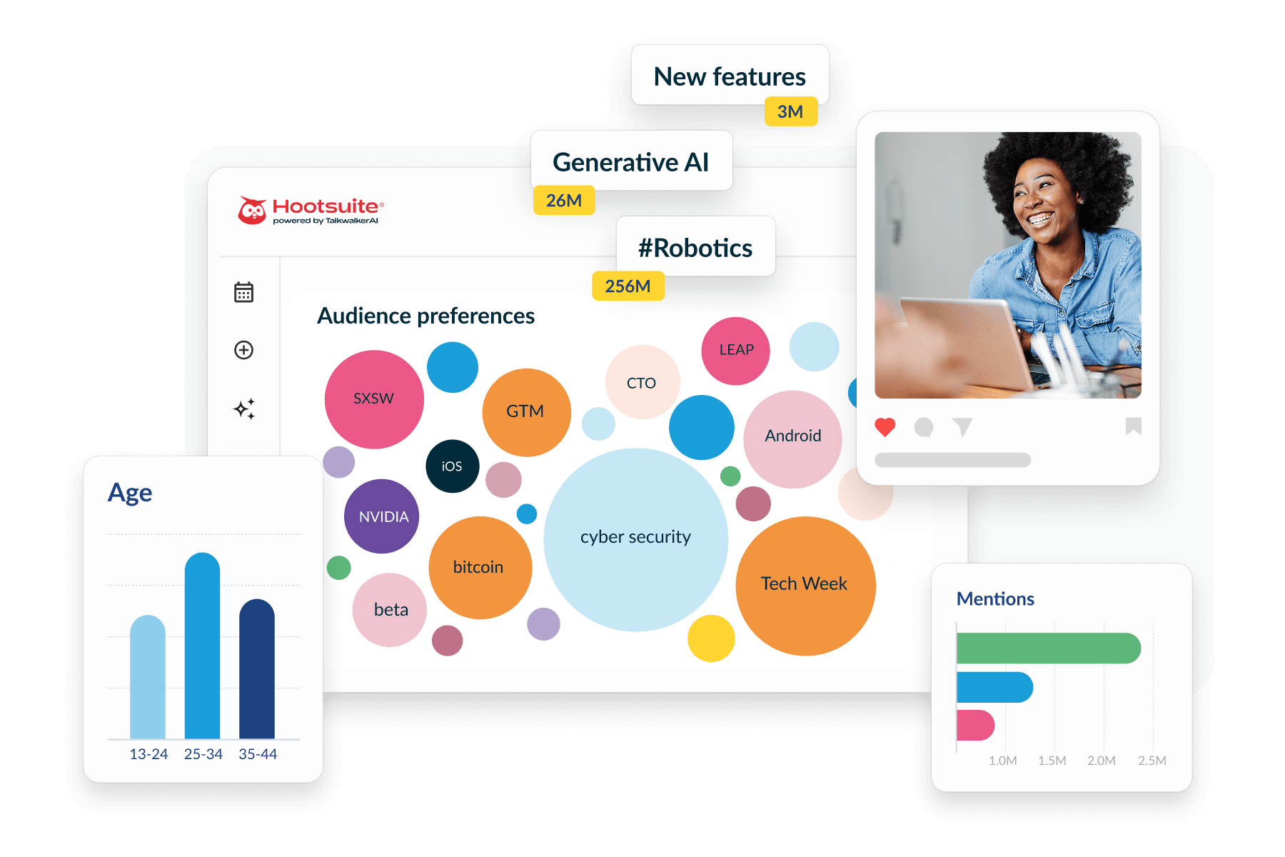Hootsuite powered by Talkwalker AI brings product and marketing orgs the insights they need to get ahead — without complex onboarding or confusing data interpretation.