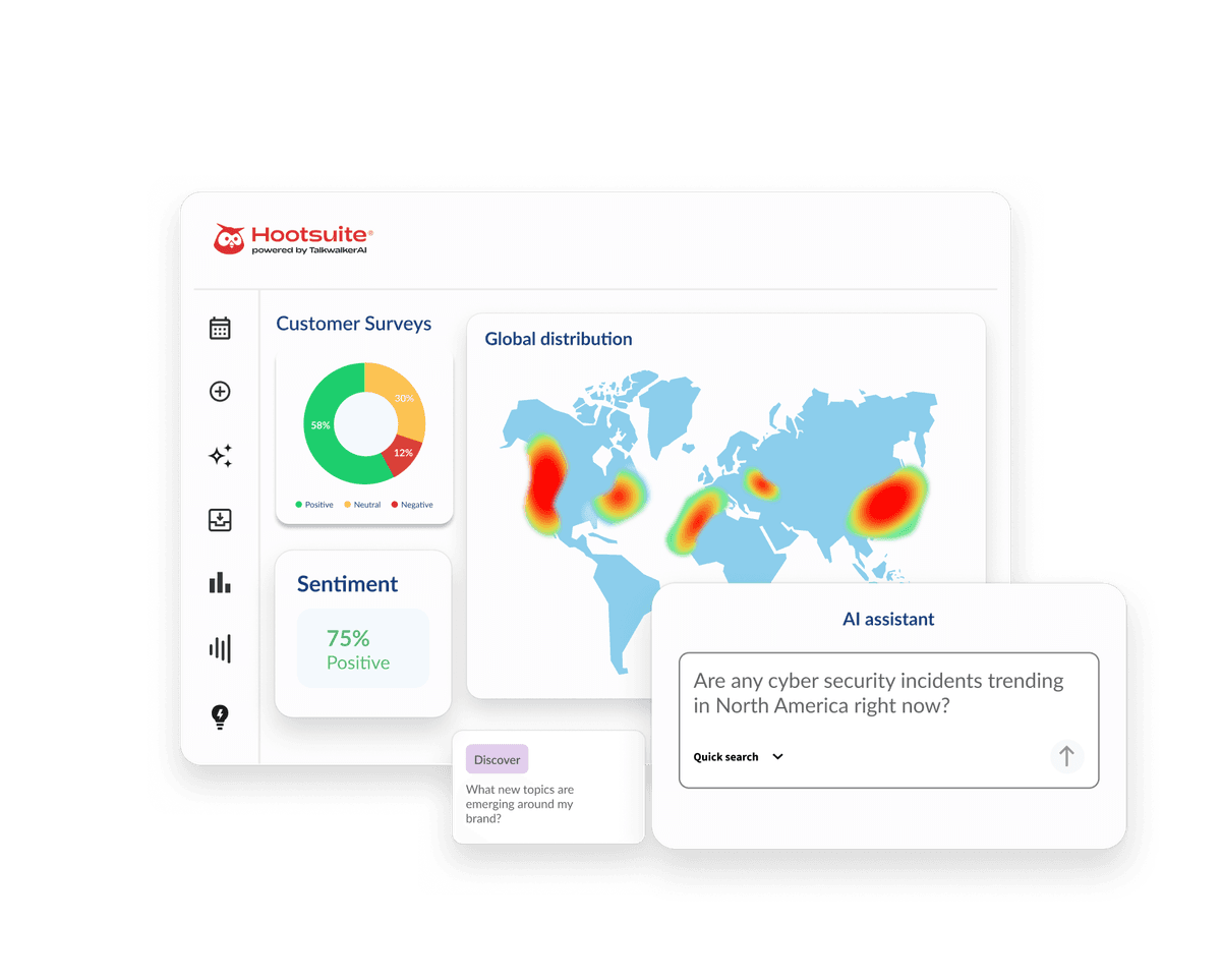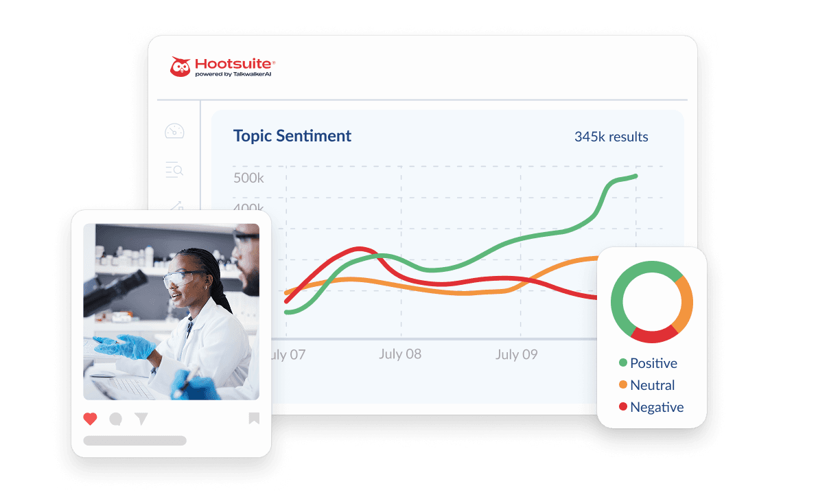 Surface emerging trends, quantify sentiment, uncover key influencers, and connect performance to revenue with Hootsuite powered by Talkwalker AI.