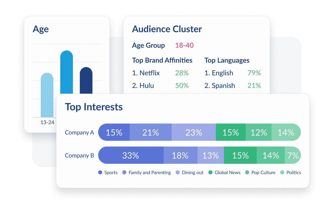 Ottimizza i profili della tua audience con dati demografici aggiuntivi, modelli comportamentali, interessi e livelli di engagement.