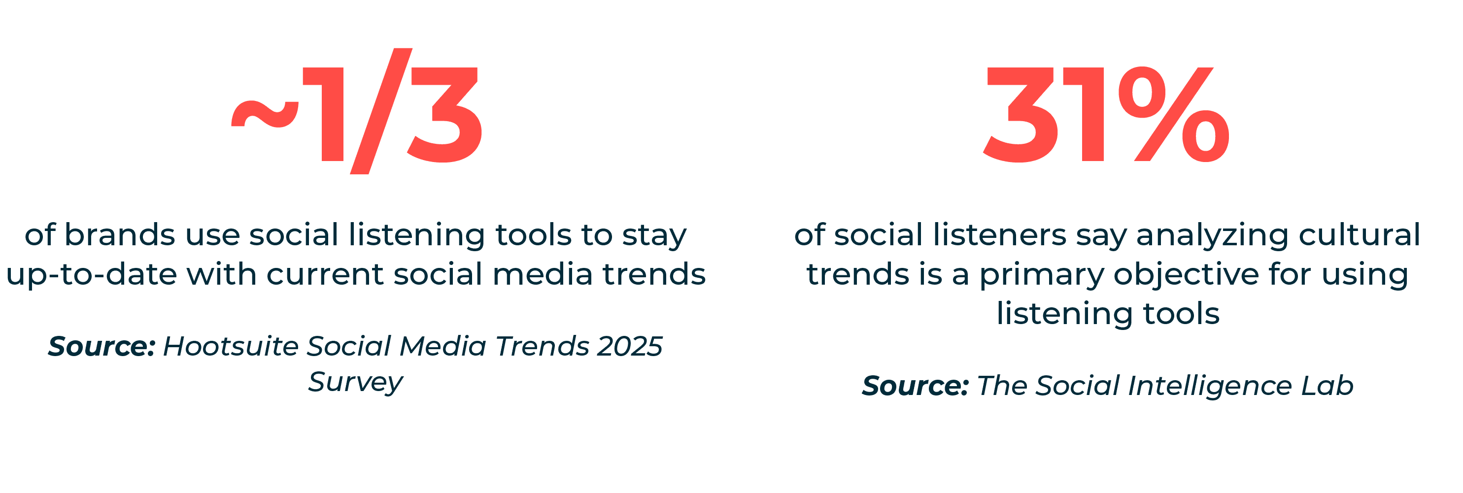 Ora che sempre più organizzazioni si rivolgono all'ascolto social per ottenere informazioni altrimenti difficili da ottenere, possono prendere decisioni più informate su quali tendenze accogliere e quali evitare. Più di un quarto dei social marketer cambia già i propri contenuti grazie alle opportunità culturali come i meme e le tendenze.