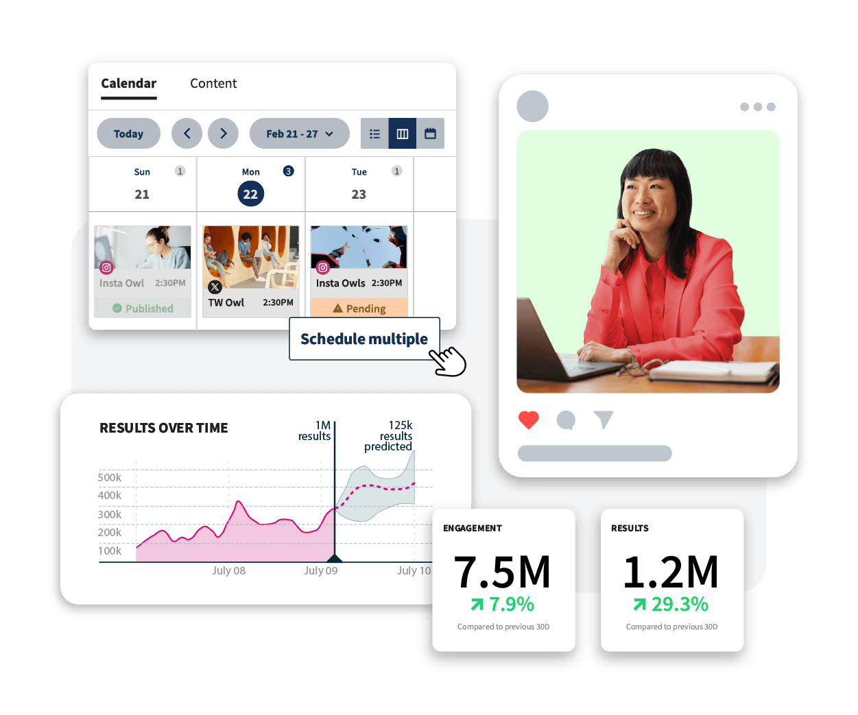 Post or schedule content to all your networks at once in a few clicks. See exactly when to post to get the most engagement, bulk upload up to 350 posts at once, and use AI to write captions and hashtags faster than ever.