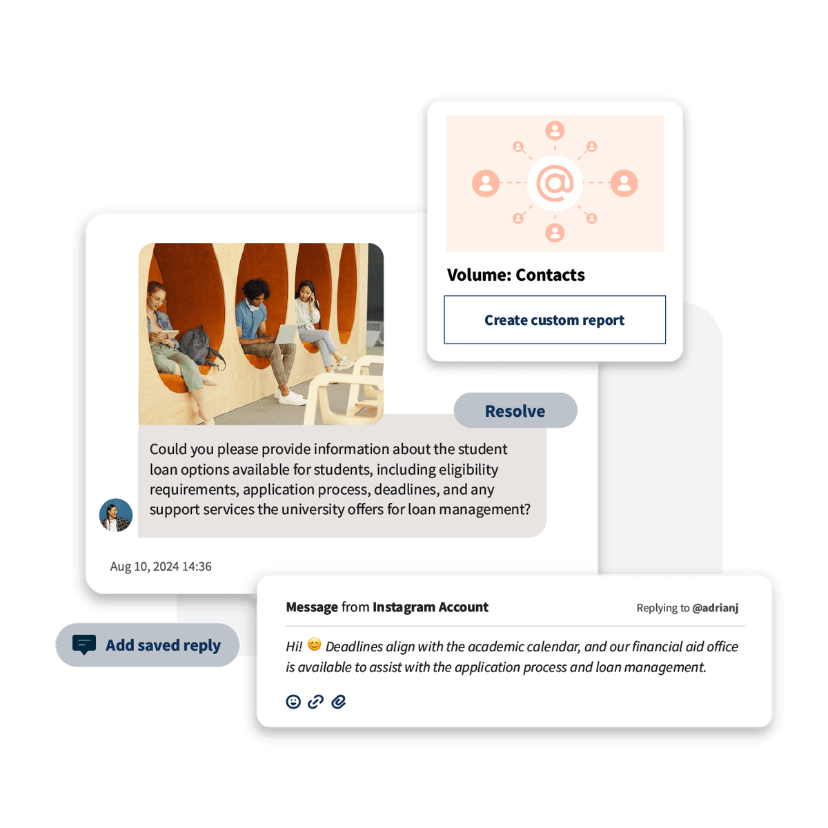 Answer messages faster and delight customers with saved and automated replies and customer satisfaction surveys. Ensure quick responses from the most qualified team members with skill-based routing. Always give agents the context they need with internal chat, notes, and conversation histories.
