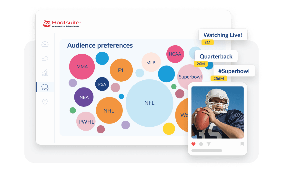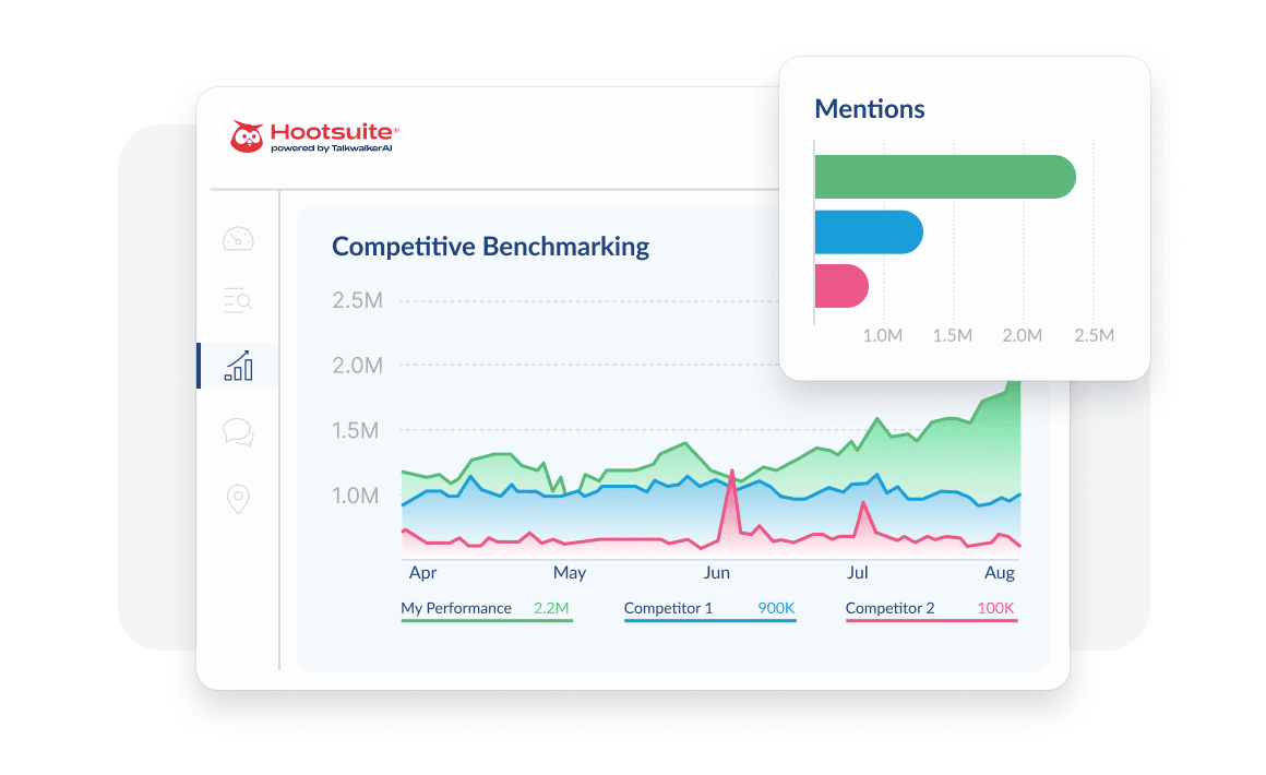 Get instant visibility into breaking news, social chatter, and broadcast coverage with Hootsuite powered by Talkwalker AI. Turn mountains of data into clear insights that keep your brand ahead of competitors and crises.